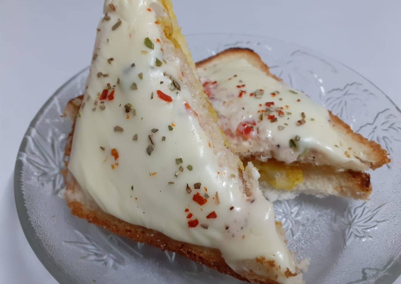 - Sprinkle red chilli flakes and oregano and place it on a pan. Cover the lid and cook till cheese melts or bread crisp.you can make in oven too.serve hot