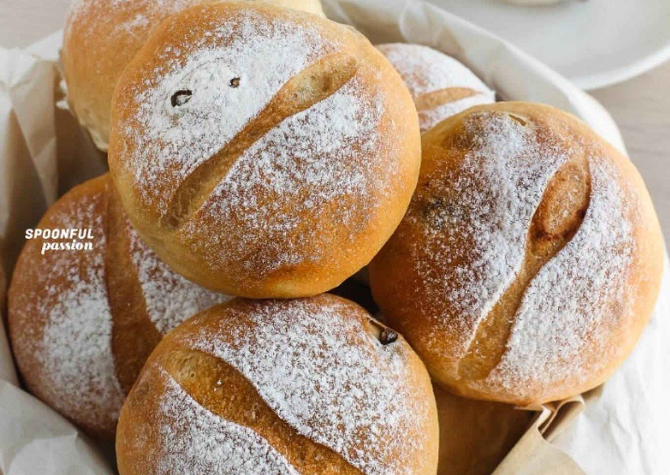 Making petit pain or French roll with the addition of raisins. It's an eggless bread that is crusty but still soft on the inside.