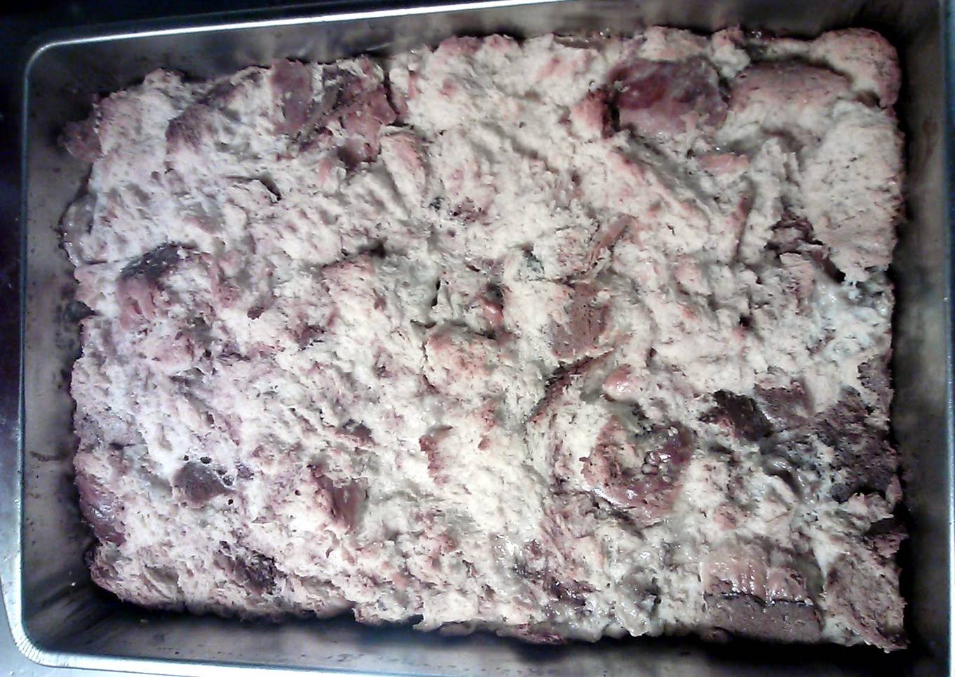 - slice bread in squares or pull apart. add to mixture til most has been absorbed into bread.